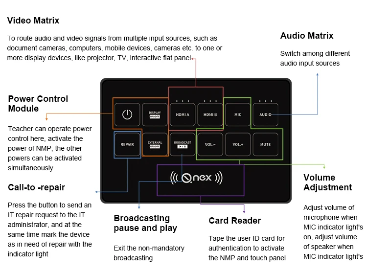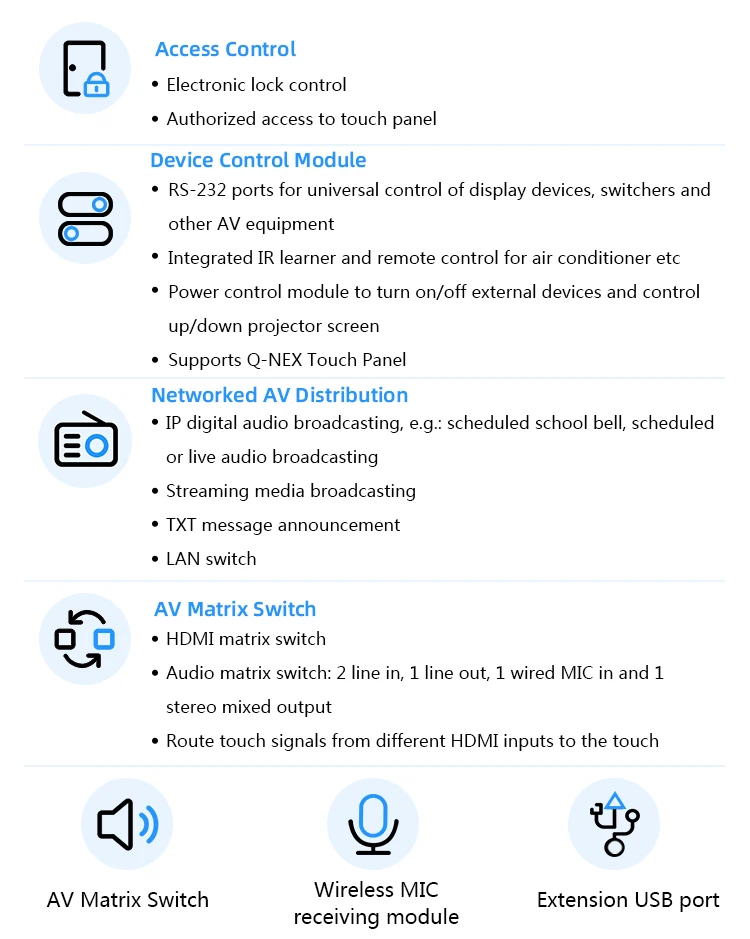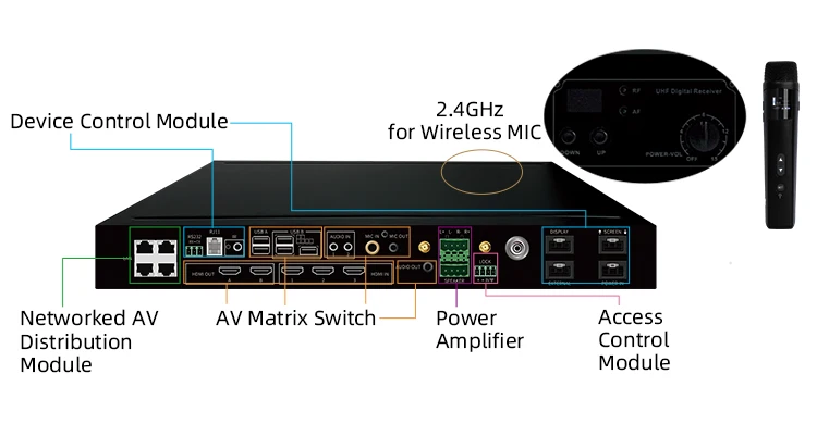 Điều Khiển âm thanh: MIC/Loa khối lượng điều chỉnh; đầu vào Âm Thanh chuyển đổi (HDMI/LINE1/LINE2)
