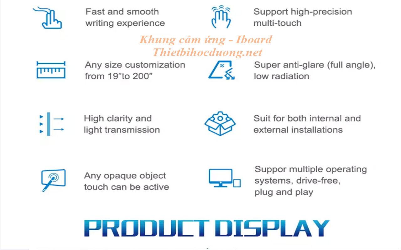 - Khung cảm ứng có đặc điểm hỗ trợ đa chạm, chính xác và không có điểm chết