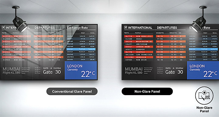 - Màn hình hiển thị chống loá giúp nội dung hiển thị sắc nét ngay cả khi hoạt động dưới sự ảnh hưởng của ánh sáng xung quanh. Màn hình này phân bổ ánh sáng toàn màn hình, loại bỏ ánh sáng chói trong khi đảm bảo độ trong và chính xác cho mọi nội dung hiển thị.