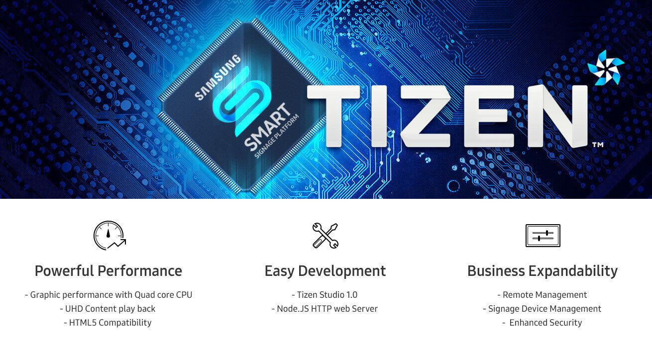 - Màn hình dòng QMH là một trong những dòng màn hình đầu tiên của Samsung hỗ trợ SSSP 5.0 được nâng cấp, chạy trên nền tảng hệ điều TIZEN 3.0 mạnh mẽ. Với sự kết hợp này, người dùng có thể có trong tay những tính năng thiết yếu nhất cho hoạt động doanh nghiệp, từ khả năng phát triển ứng dụng bảo mật ngay trên nền tảng cho đến quản lý từ xa. Không chỉ mang đến khả năng hiển thị hình ảnh đồ họa tiên tiến, màn hình dòng còn cho phép người dùng truyền tải thông điệp thời gian thực thông qua công nghệ quản lý Beacon.