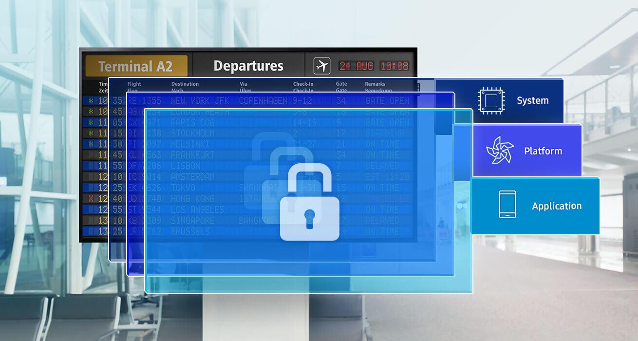 - Đối với chính phủ, kinh doanh tài chính hoặc các doanh nghiệp liên quan mật thiết đến dữ liệu, vấn đề bảo mật thông tin trở thành yêu cầu tiên quyết để vận hành hiệu quả. Màn hình dòng QMH của Samsung đáp ứng nhu cầu này thông qua các phương pháp bảo mật nghiêm ngặt. Hệ điều hành TIZEN 2.0 tích hợp mở rộng lớp an ninh trên toàn bộ ứng dụng, nền tảng và các tầng hệ thống, chỉ cho phép truy cập dữ liệu và thông tin của một số cơ sở dữ liệu người dùng đặc biệt.