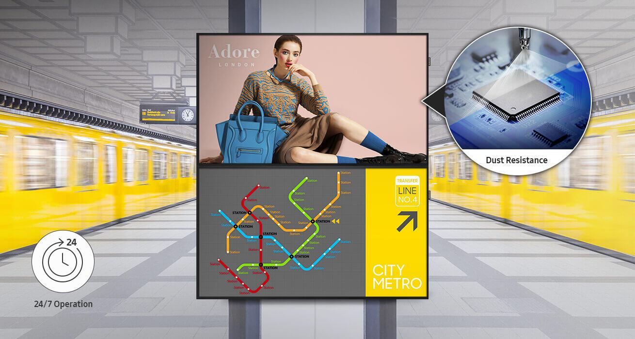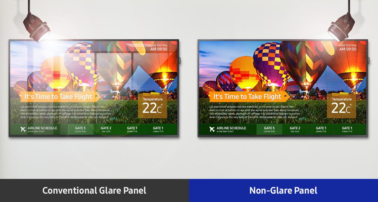 - Màn hình dòng QMH của Samsung đảm bảo khả năng đọc nội dung ở bất kỳ môi trường nào với tấm nền phía trước được trang bị chống lóa hoàn toàn. Thiết kế cao cấp này giảm tình trạng phản chiếu và duy trì độ rõ nét cho hình ảnh và nội dung hiển thị. Vì vậy, các doanh nghiệp kinh doanh ngoài trời hay trong nhà thường phải đối mặt với nhiều nguồn sáng nhân tạo hay tự nhiên, có thể đăng tải nội dung mà không lo ngại trải nghiệm người xem bị gián đoạn