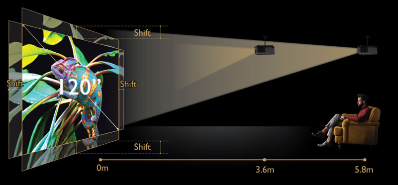 Ưu điểm ấn tượng nữa của máy chiếu BenQ W5700 là cung cấp dịch chuyển ống kính H / V để phù hợp hoàn hảo với bất kỳ phòng nào có dải khoảng cách và chiều cao chiếu động. Và zoom lớn 1.6X cung cấp một loạt các khoảng cách ném để tăng đáng kể tính linh hoạt cài đặt cho các tùy chọn lắp đặt và đặt đa dạng, dễ dàng biến bất kỳ không gian nào thành một rạp chiếu phim gia đình thực sự truyền cảm hứng.