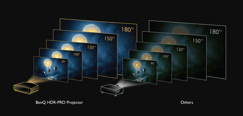 Tối ưu hóa cho trình chiếu, công nghệ HDR-PRO độc quyền của BenQ nâng cao trải nghiệm xem 4K HDR. Sử dụng ánh xạ nâng cao, HDR-PRO cung cấp phạm vi tương phản lớn hơn để làm nổi bật mọi chi tiết từ 4K Blu-ray cũng như phát trực tiếp nội dung để thưởng thức điện ảnh tuyệt vời hơn.