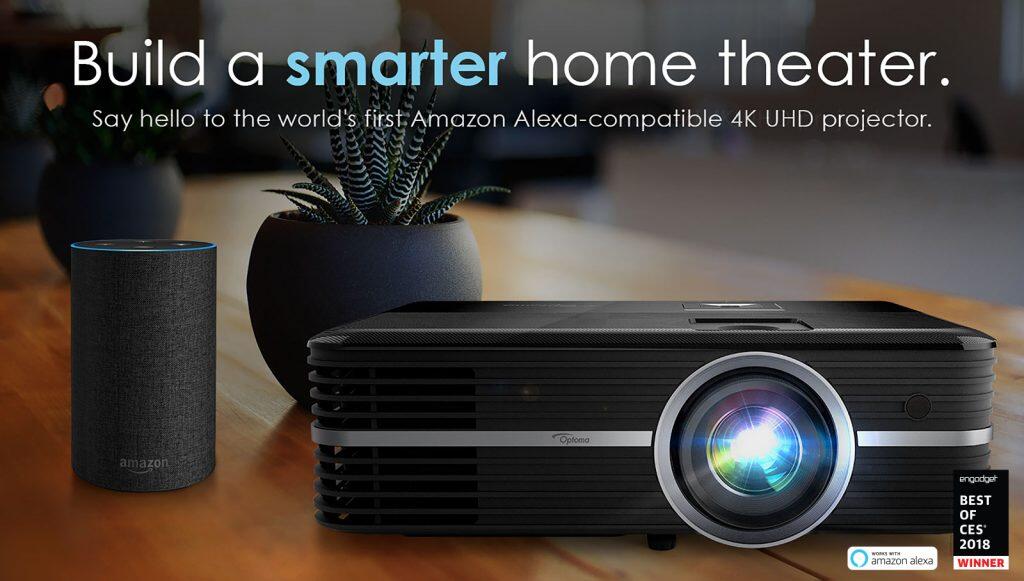 Máy chiếu Optoma UHD51A 4K UHD được tích hợp với Amazon Alexa Smart Home cùng kỹ năng tùy chỉnh để cho phép chiếu phù hợp với màn hình, ánh sáng và nhiều hơn nữa trong bất kỳ thiết lập nhà thông minh nào.