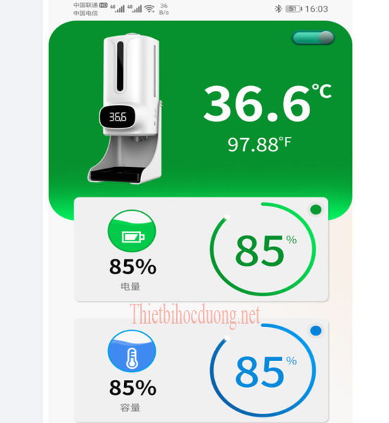 Máy K9 Pro rửa tay khử khuẩn Gel khô và đo thân nhiệt từ xa chích xác có chuông báo.